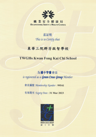 As a member of the Hong Kong Occupational Safety & Health Council "Green Cross Group", the school strives to promote safety and health of all school staff, students and visitors.